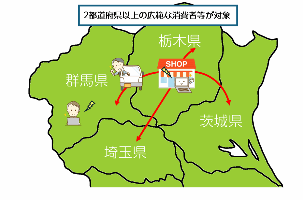 例えば、栃木県宇都宮市に販売場があり、栃木県内に限らず、群馬県・茨城県・埼玉県など複数の都道府県の消費者に対して、インターネット等を通じて酒類を販売する場合がこれに該当します。